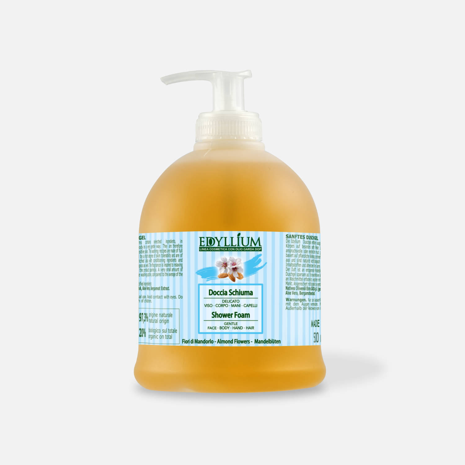 Il doccia schiuma Edyllium Fiordi di Mandorlo deterge la pelle del corpo in modo delicato.